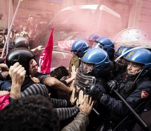 contra os Carabinieri (policiais militares da Itália), que revidaram com